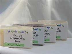 Super moisturizing, this all-natural, hand-made soap contains Emu Oil and Goats Milk. Unlike other soaps, this soap is not made with water. The water is replaced with wholesome fresh-from-the-farm Goat Milk! Great for sensitive skin. Comes in the following scents: Bay Rum, Lilac, Rose, Unscented, and Vanilla.